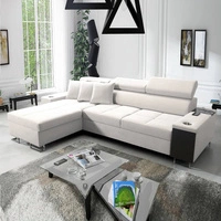 Narożnik z funkcją spania Castel II beżowy prawostronny komfortowy narożnik z regulowanymi zagłówkami pojemnik na pościel