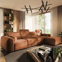 Narożnik z funkcją spania Cantare VIII łososiowy lewostronny gustowny narożnik z regulowanymi zagłówkami pojemniki na pościel