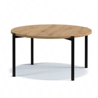 Stolik kawowy okrągły 84 cm Sampi dąb artisan ponadczasowy i lekki design solidna metalowa podstawa idealny stolik do każdej aranżacji