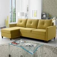 Narożnik z funkcją spania Selva musztardowy uniwersalny narożnik z pojemnikiem na pościel wykonany z komfortowej tkaniny typu plusz