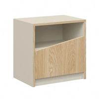 Szafka nocna Atson szarobeżowy / dąb olejowany prawa funkcjonalny dodatek do sypialni w stylu nowoczesnym oryginalny kształt drzwi