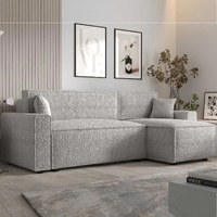 Narożnik z funkcją spania Brandon Bis szary popiel prawostronny miękka tkanina o charakterystycznej pętelkowej powierzchni pojemnik na pościel