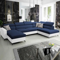 Narożnik z funkcją spania Rava VII granatowy lewostronny praktyczny i nowoczesny narożnik do salonu z regulowanymi zagłówkami