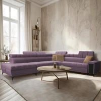 Narożnik z funkcją spania Bolmso XII fioletowy lewostronny nowoczesny design narożnik zapewnia komfort obszerne pojemniki na pościel