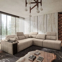 Narożnik z funkcją spania Tesalia III Lux beżowy prawostronny komfortowy narożnik z wysuwanym podnóżkiem funkcja przesuwanego oparcia