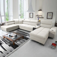 Narożnik z funkcją spania Castel VII beżowy prawostronny stylowy narożnik z pojemnikiem na pościel i regulowanymi zagłówkami