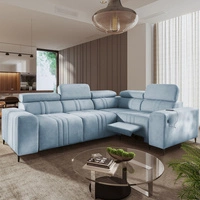 Narożnik z funkcją spania Castel II Lux błękitny prawostronny wygodny narożnik do salonu z komfortowym wysuwanym podnóżkiem