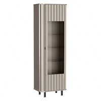 Witryna Novado 65 cm clay grey witryna z szufladą front ozdobiony dekorem jodełki elementy z bezpiecznego szkła stylowe czarne uchwyty