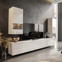 Meblościanka Nestorio czarna / czarny połysk stylowy design meblościanki wpisujący się w każde wnętrze szafka RTV z możliwością powieszenia