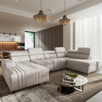Narożnik z funkcją spania Buffalo VIII beżowy prawostronny wysokiej klasy narożnik do salonu z pojemnikami wysoka jakość wykonania