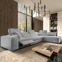 Narożnik z funkcją spania Viano VII szary błękit lewostronny modny i stylowy narożnik z regulowanymi zagłówkami ozdobne poduszki