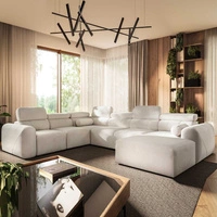 Narożnik Samos beżowy prawostronny nowoczesny design prosta i stylowa bryła wpisująca się w każdą aranżację regulowane zagłówki