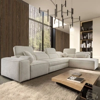 Narożnik z funkcją spania Viano XI kremowy prawostronny modny i stylowy narożnik z regulowanymi zagłówkami ozdobne poduszki