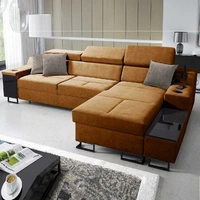 Narożnik z funkcją spania Alcamo III jasny brąz prawostronny funkcjonalny narożnik z szufladą w boczku dwa pojemniki na pościel