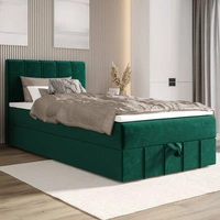 Łóżko kontynentalne Bing 90x200 butelkowa zieleń w nowoczesnym skandynawskim stylu z tapicerowanym zagłówkiem łóżko z pojemnikiem