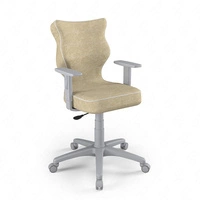 Krzesło do biurka Duo beżowe dopasowane do wzrostu 159-188 cm profilowane siedzisko regulowane podłokietniki łatwo czyszcząca tkanina