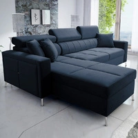 Narożnik z funkcją spania Kelly Sleek VI czarny lewostronny nowoczesny design narożnik do salonu z regulowanymi zagłówkami