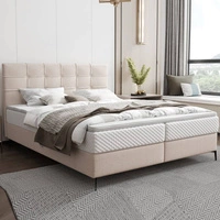 Łóżko kontynentalne Irvine 160x200 beżowe stylowe łóżko z pojemnikiem na pościel wygodne wezgłowie zachwyca eleganckim designem
