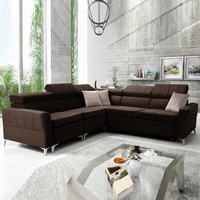 Narożnik z funkcją spania Rava IV brązowy lewostronny velvet komfort podczas codziennego wypoczynku pojemnik na pościel