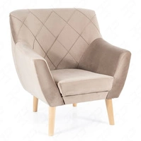 Fotel Kier ciemny beżowy funkcjonalny oraz nowoczesny fotel kubełkowy komfortowy podczas wypoczynku bukowe nogi delikatne przeszycie oparcia