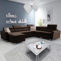 Narożnik z funkcją spania Rava VII brązowy lewostronny praktyczny i nowoczesny narożnik do salonu z regulowanymi zagłówkami