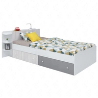 Łóżko z szufladą Niko 90x200 cm białe / dąb / morski nowoczesny design łóżka wysuwane półki w zagłówku