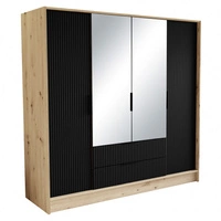 Szafa z lustrem Norel 200 cm dąb artisan / czarny stylowa szafa o nowoczesnym designie z ryflowanymi frontami i pojemnymi szufladami