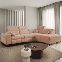 Narożnik z funkcją spania Penejos łososiowy lewostronny elegancki narożnik z pojemnikiem na pościel komfortowe regulowane zagłówki