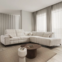 Narożnik z funkcją spania Luigi XII beżowy lewostronny stylowy narożnik do salonu w minimalistycznym i eleganckim wykończeniu