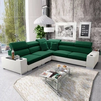 Narożnik z funkcją spania Elgin turkusowy / biały prawostronny narożnik z regulowanymi zagłówkami praktyczne szuflady w boczkach mebla