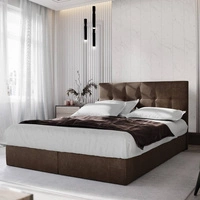 Łóżko kontynentalne Harmony 140x200 brąz w nowoczesnym skandynawskim stylu z wezgłowiem wykończonym ozdobnymi guzikami