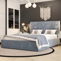 Łóżko tapicerowane Hestia 180x200 z pojemnikiem błękitny w nowoczesnym skandynawskim stylu z wygodnym zagłówkiem