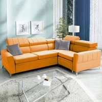 Narożnik z funkcją spania Rava II żółty prawostronny velvet komfortowy narożnik z pojemnikiem na pościel wielofunkcyjna lampka