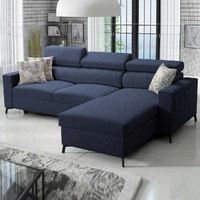 Narożnik z funkcją spania Savona granatowy prawostronny wygodny elegancki narożnik z regulowanymi zagłówkami dekoracyjne przeszycia