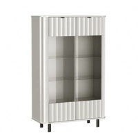 Witryna niska Novado 98 cm biel alpejska nowoczesna witryna o lekkim stylu zaokrąglone krawędzie metalowe uchwyty wysokie nogi