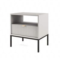 Szafka nocna Novado biel alpejska elegancka szafka do sypialni w stylu minimalistycznym oryginalny frezowany front metalowa podstawa