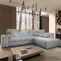 Narożnik z funkcją spania Tesalia III szary popiel lewostronny komfortowy narożnik z przesuwanym oparciem dwa pojemniki na pościel