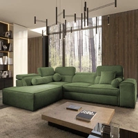 Narożnik z funkcją spania Viano VII zielony lewostronny modny i stylowy narożnik z regulowanymi zagłówkami ozdobne poduszki