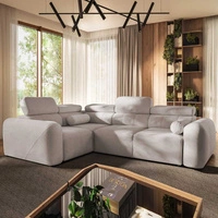 Narożnik z funkcją spania Cantare II kość słoniowa lewostronny komfortowy narożnik do salonu o stylowym charakterze miękka tkanina