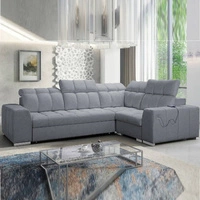 Narożnik z funkcją spania Kelly Sleek IX szary prawostronny elegancki narożnik z wygodnymi podłokietnikami i regulowanymi zagłówkami