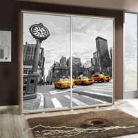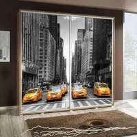 Szafa przesuwna Artistino 205 cm z grafiką taksówka II schody korpus szafy w kolorze dąb catania wykonany z płyty o grubości 22mm