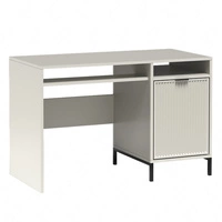 Biurko Linka 120 cm beżowe doskonałe biurko do domowego biura czarne uchwyty krawędziowe dekoracyjne ryflowania na froncie mebla