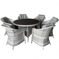 Zestaw mebli ogrodowych Avvicente szary elegancki zestaw mebli technorattanowych klasyczna konstrukcja wpisująca się w każdy ogród