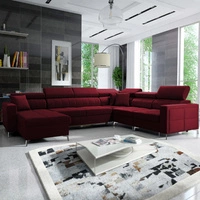 Narożnik z funkcją spania Nausa VII bordowy lewostronny elegancki narożnik do salonu wykonany z miękkiej tkaniny typu velvet