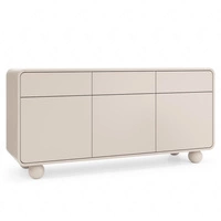 Komoda z szufladami Bion 160 cm beżowa stylowa komoda do salonu designerski obły kształt oryginalne nogi w kształcie kul push to open