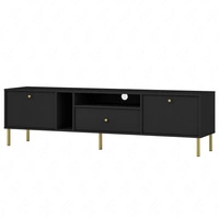 Szafka RTV Kioto II 180 cm czarny grafit elegancka szafka pod telewizor wsparta na prostych metalowych nogach złote uchwyty