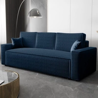 Kanapa rozkładana Nelo niebieska prosta forma sofy w nowoczesnym designie sztruksowa tkanina obiciowa pojemnik na pościel