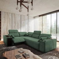 Narożnik z funkcją spania Penejos III Lux zielony lewostronny komfortowy narożnik do salonu z wysuwanym podnóżkiem pojemnik na pościel