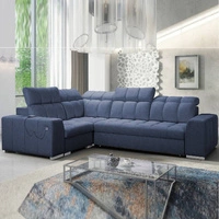 Narożnik z funkcją spania Luigi II niebieski lewostronny komfort podczas codziennego wypoczynku narożnik z pojemnikiem na pościel