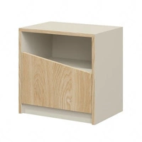 Szafka nocna Atson szarobeżowy / dąb olejowany lewa funkcjonalny dodatek do sypialni w stylu nowoczesnym oryginalny kształt drzwi